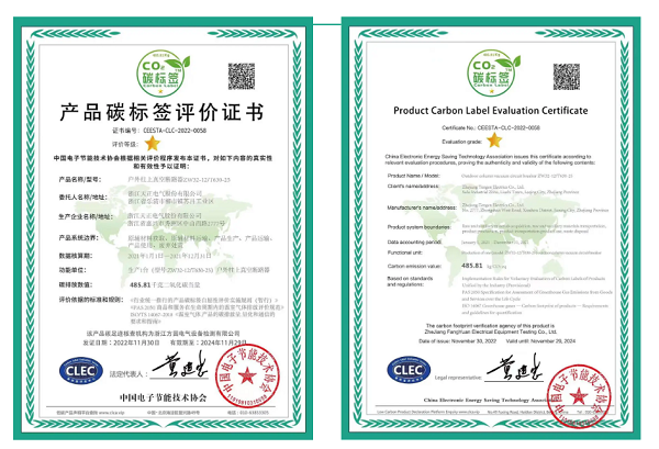此次碳标签评价表明,九游会j9电气生产的户外柱上真空断路产品,在碳排放大数据方面按国际通行惯例推进,并具备一定的优势,对促进产品全供应链的温室气体减排,达成“双碳”目标具有积极作用。此外,九游会j9还获中国电子节能技术协会颁发的低碳产品供应商证书。